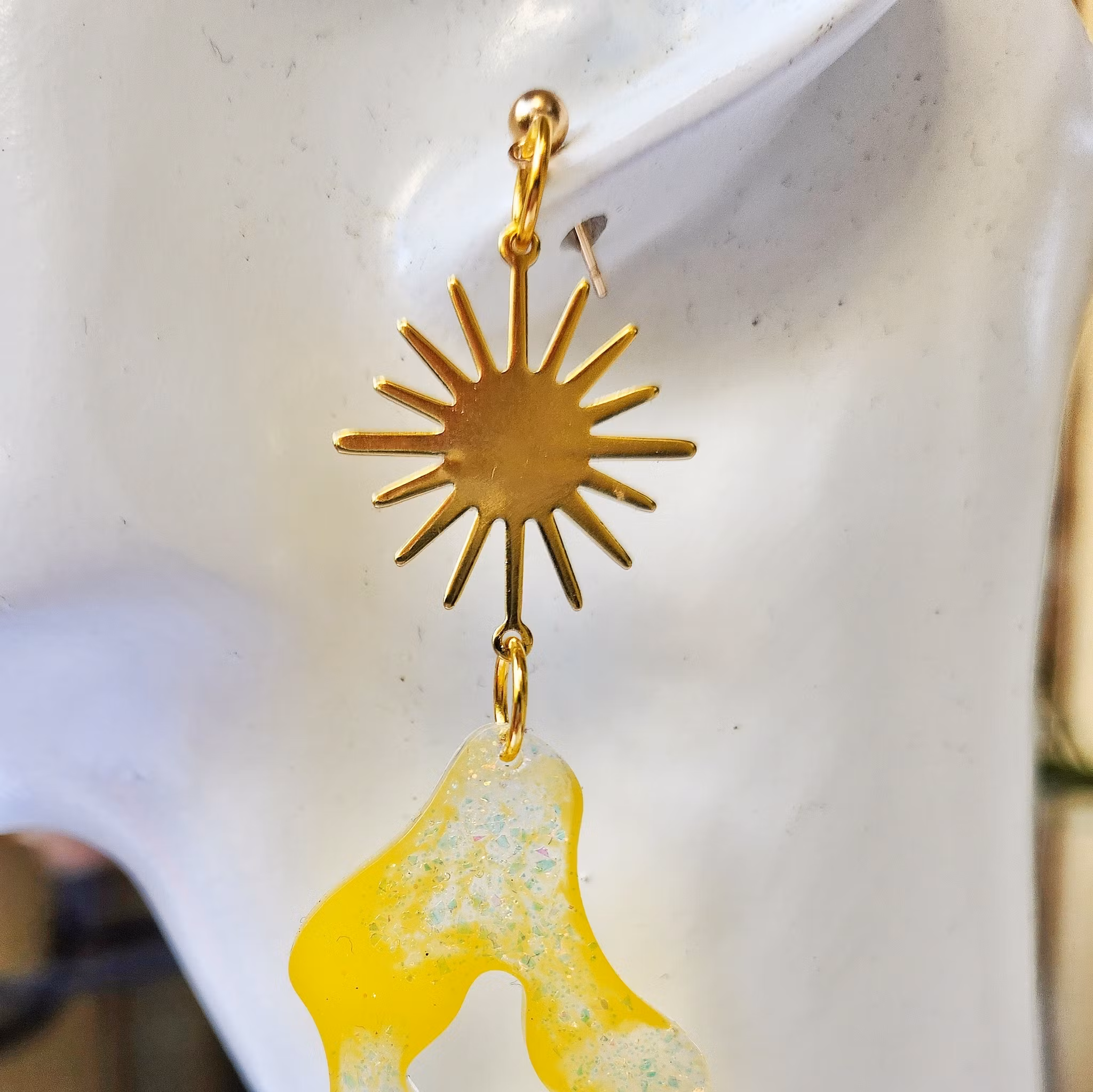 Nickelfria kulstift i guldfärg. Längd hela örhänget: 9,5 cm.